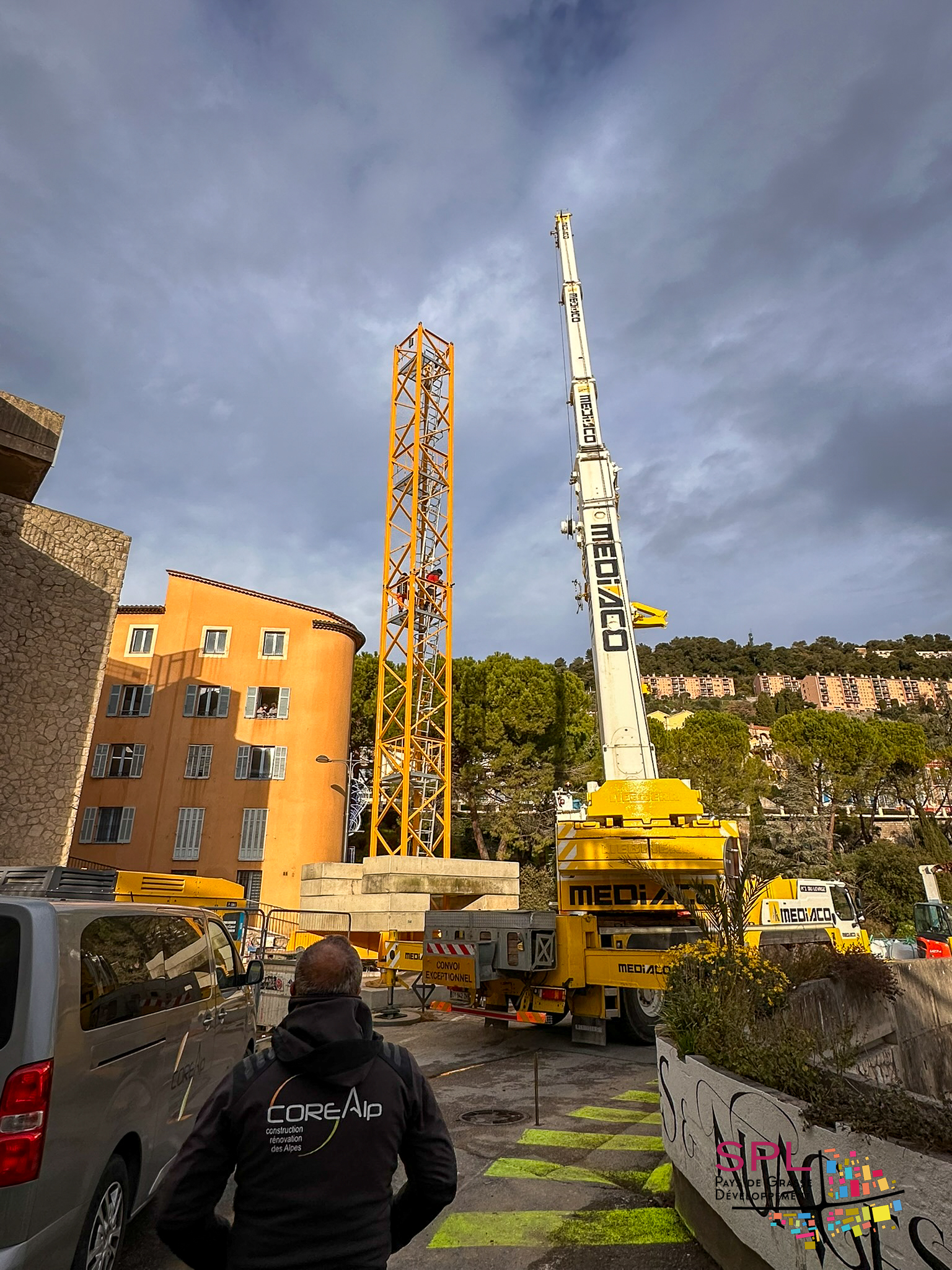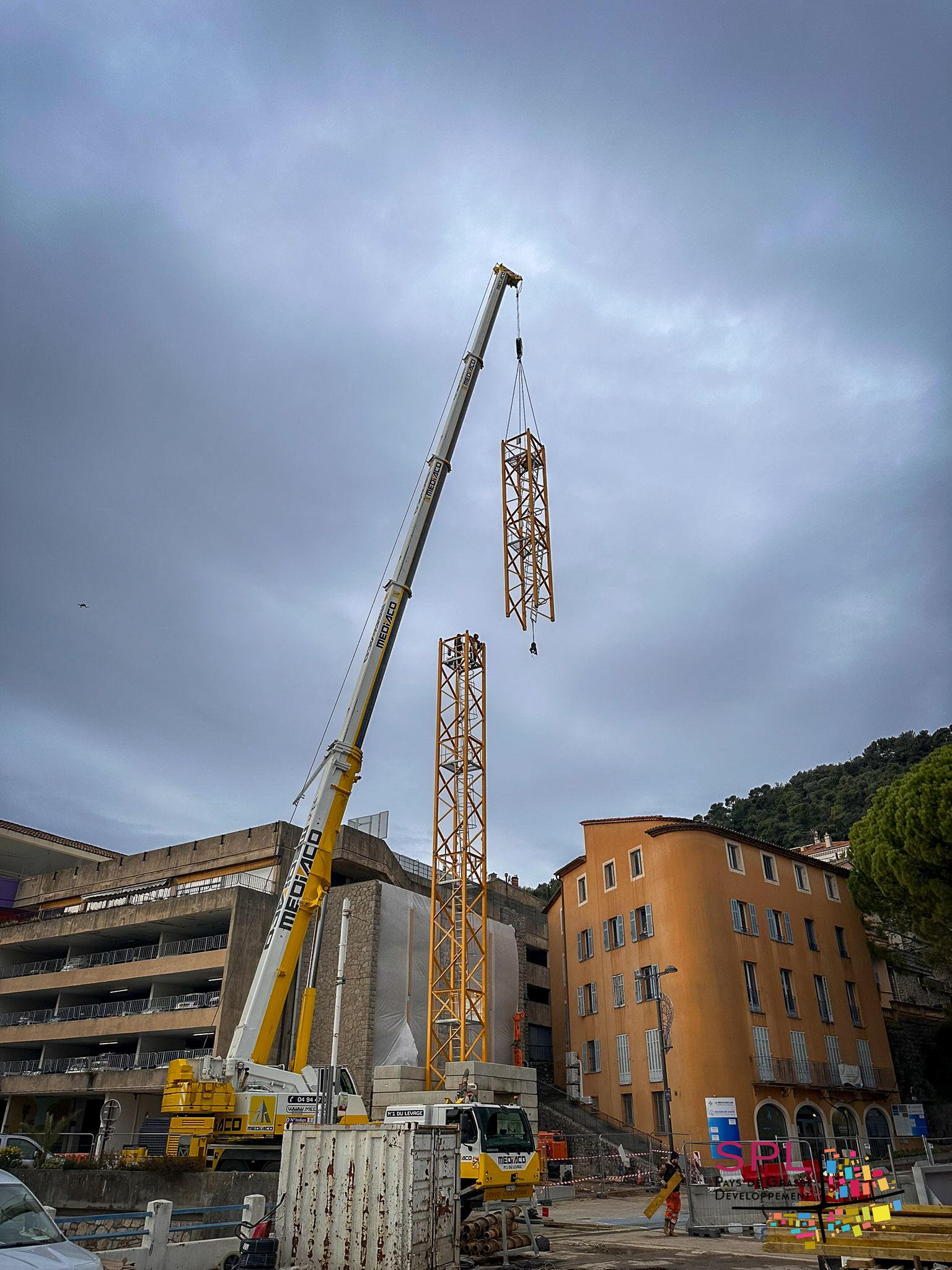Ce lundi 19 janvier 2026 a été un moment marquant dans la vie du chantier de MARTELLY et de son premier ilot entré en phase travaux. En effet, la grue a été érigée avec des caractéristiques à la hauteur de l’échelle de ce projet : avoisinant les 30 m de haut, avec une flèche de 55 m.