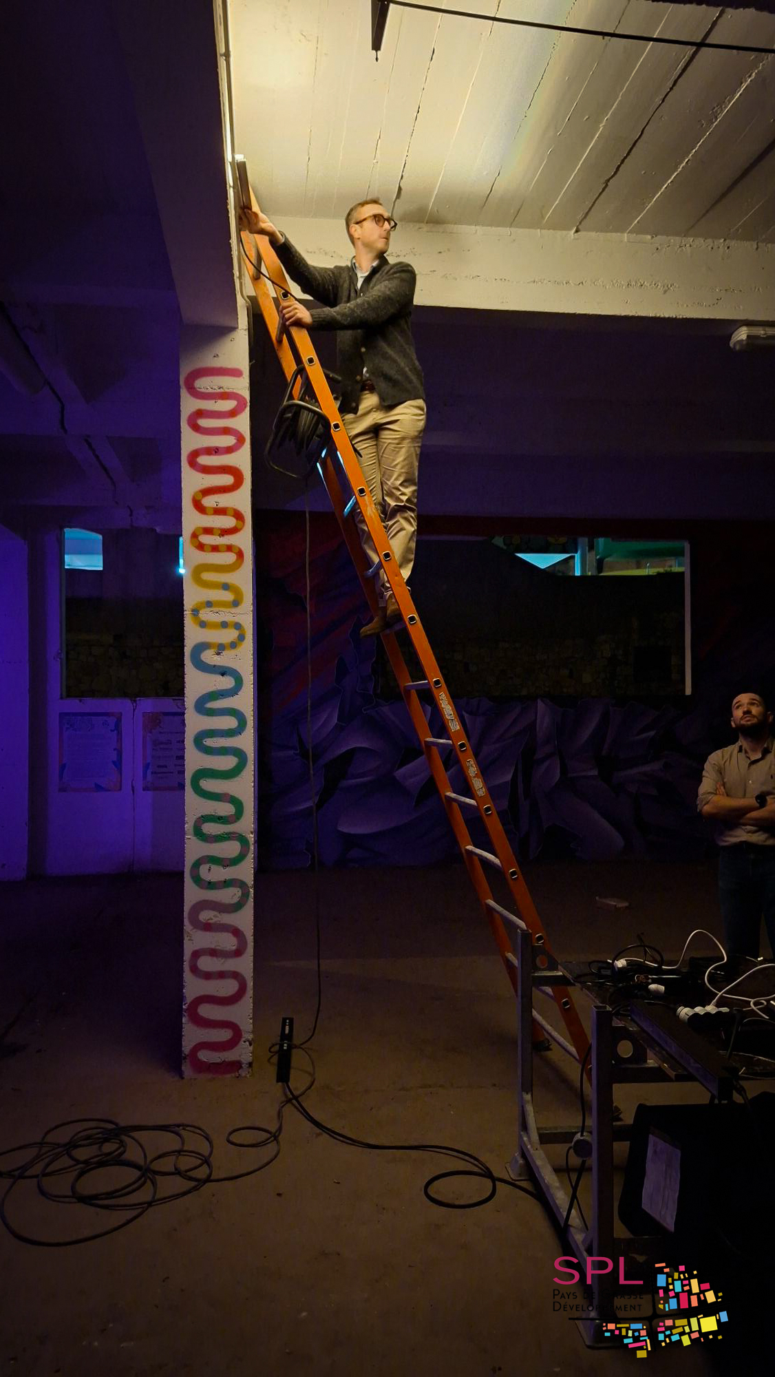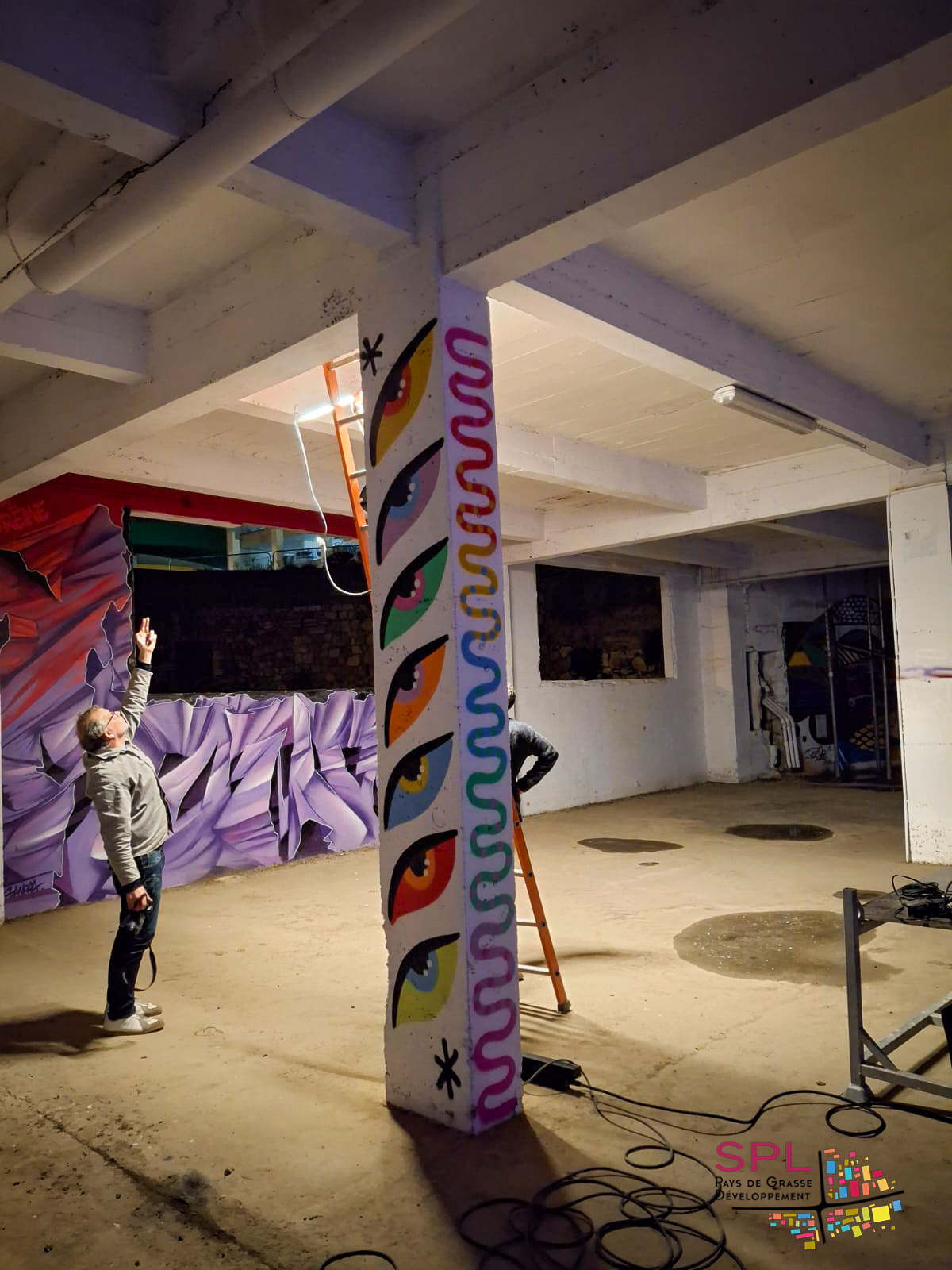 Avec la Maîtrise d’œuvre représentée par son mandataire, PNG architectes et la société spécialisée « Studio VICARINI », nous avons procédé ce jeudi 13 mars 2026 aux premiers tests dans le garage Rolland, de nuit, y compris sur les vitres sablées représentant un motif de fleur grassoise. Work in progress