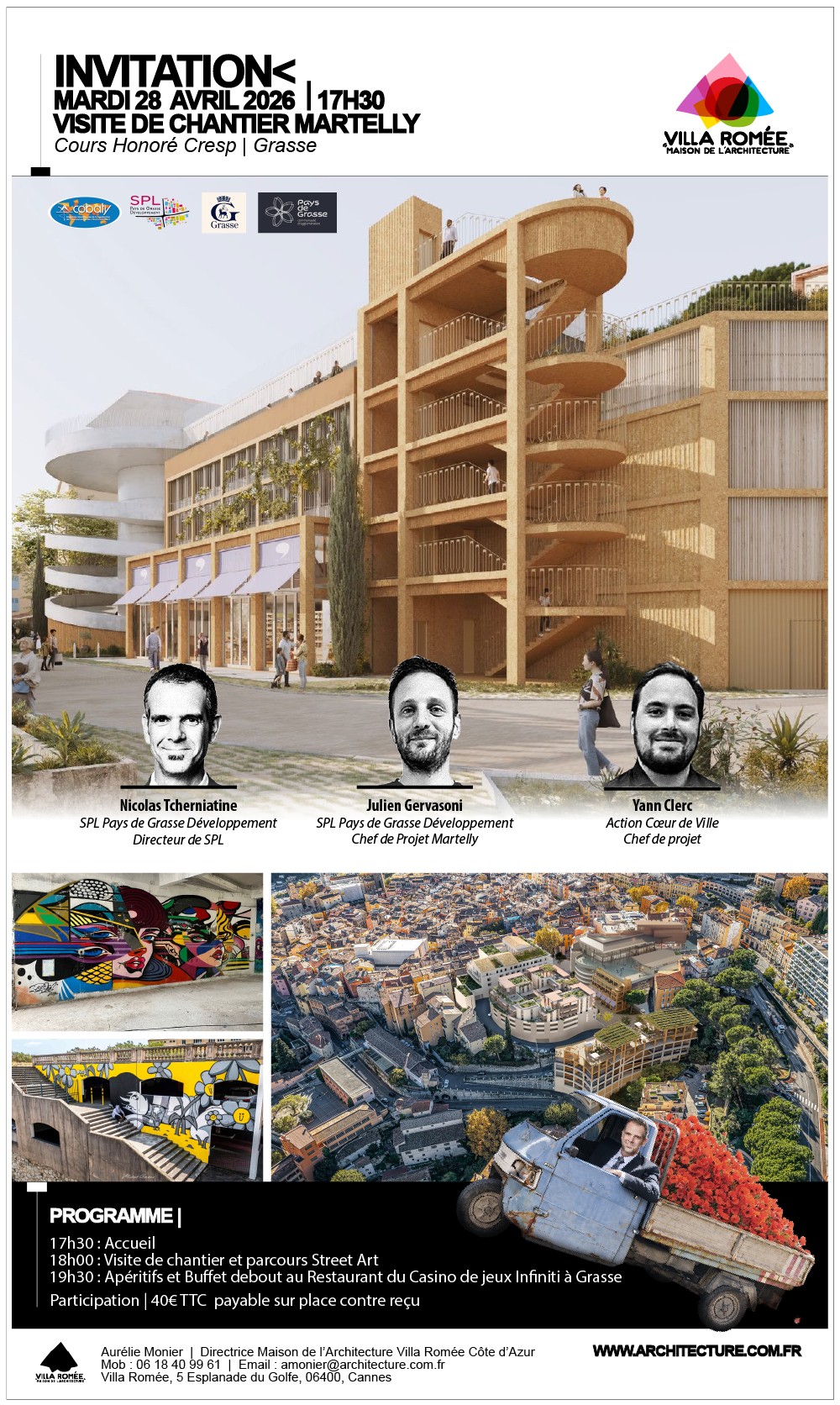 Nous organisons une soirée commune entre les 2 associations Villa Romée et Cobaty le 28 avril 2026. Cette soirée permettra de procéder à la visite de chantier du site MARTELLY, et de lier cela au volet artistique dans le cadre de l’urbanisme transitoire et faire découvrir le monde du street-art qui a émergé sur le site par le biais de 2 festivals (le 3e est en préparation pour l’été 2026).