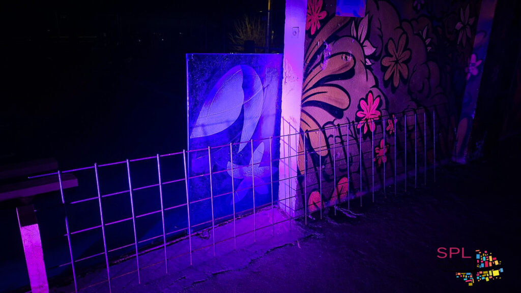 Les essais de lumière et d’éclairage se poursuivent dans la ZAC MARTELLY. Avec la Maîtrise d’œuvre représentée par son mandataire, PNG architectes et la société spécialisée « Studio VICARINI », nous avons procédé ce jeudi 13 mars 2026 aux premiers tests dans le garage Rolland, de nuit, y compris sur les vitres sablées représentant un motif de fleur grassoise. Work in progress